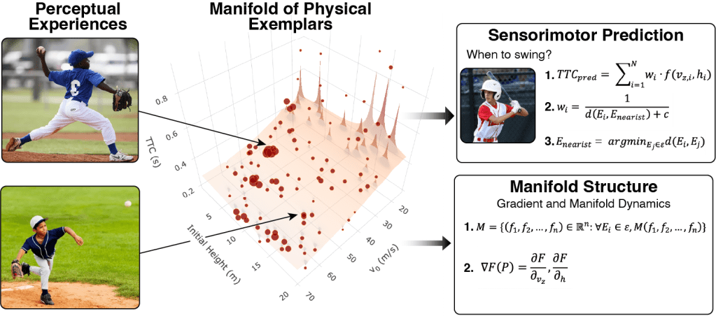 Through my “Patchwork Approach” to intuitive physics, I move away from traditional views that rely on heuristics or simulations of classical mechanics. Instead, I demonstrate that our minds track and recognize correlations between physical events, forming flexible laws that adapt as we gain new experiences. This approach suggests that our internal principles of physics are shaped by real-life experiences, allowing us to make sophisticated predictions and interact seamlessly with our environment. As we navigate the physical world, we continually develop a unique “patchwork” of intuitive physics that, while distinct from classical mechanics, is optimized for practical interactions. As a next step, I build image-computable versions of the Patchwork Approach, using large-scale egocentric video and modern computer vision to extract the physical statistics that shape this perceptual manifold (see Computer Vision & AI below).